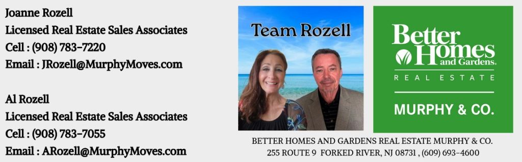 Team Rozell is powered by Joanne and Al Rozell, both licensed real estate professionals. Team Rozell embodies an unparalleled commitment to success through knowledge, dedication, and unwavering professionalism. Specializing in real estate in Ocean County and real estate in Monmouth County NJ.